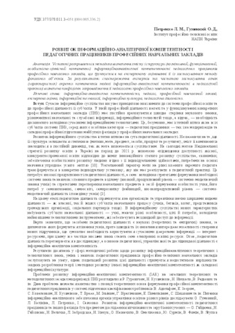 - Петренко, Лариса Михайлівна (orcid.org/0000-0002-7604-7273) (2017) Development of information and analytical competence pedagogical workers of vocational schools Наукове забезпечення розвитку освіти в Україні: актуальні проблеми теорії і практики (до 25-річчя НАПН України). pp. 320-327.