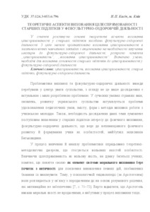 - Касіч, Н.П. (2017) Theoretical aspects of development of teenagers’ dedication to purpose in the process of physical education and recreation activities Теоретико-методичні проблеми виховання дітей та учнівської молоді, 1 (21). pp. 263-275. ISSN 2308-3778