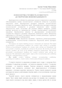 - Третяк, Т.М. (2017) Personality's psychological readiness for creative mental activity In: Особливості сучасного мислення особистості в умовах ціннісних трансформацій : Всеукраїнська науково-практична конференція, 24 жовтня 2017 року, м. Київ, Україна.