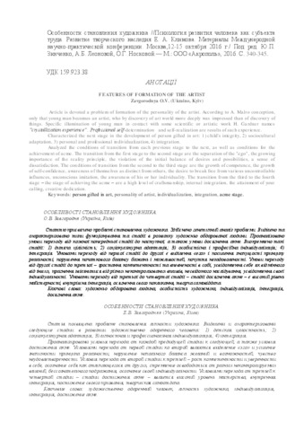 | Keywords: | person gifted in art, personality of artist, individualization, integration, acme stage. |