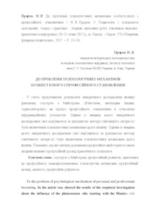 - Пророк, Н.В. (2017) To the problem of psychological mechanism of personal and professional becoming In: Педагогіка і психологія сьогодення: теорія і практика : збірник наукових робіт учасників науково-практичної конференції (20–21 січня 2017 р., м. Одеса) . ГО «Південна фундація педагогіки», м. Одеса, Україна, pp. 23-26.