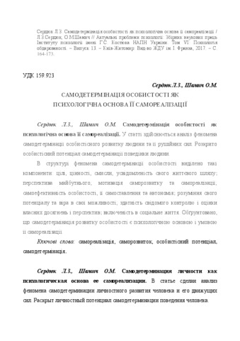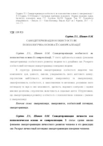 - Сердюк, Л.З. and Шамич, О.М. (2017) Personal self-determination as a psychological basis for personal self-realization Актуальні проблеми психології, 13 (6). pp. 164-173. ISSN 2072-4772