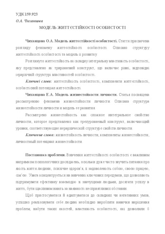- Чиханцова, О.А. (2017) Мodel of a personality's hardiness Актуальні проблеми психології, 17 (5). pp. 142-150. ISSN 2072-4772