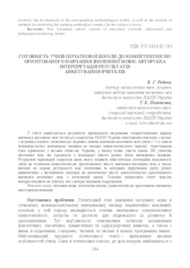 The article analyzes the results of teachers’ questionnaire survey, conducted by the scientific researchers of the Department Foreign Languages Teaching in the Institute of Pedagogy of NAPS of Ukraine, for the purpose of ascertaining their attitude to certain issues on teaching foreign languages among pupils of grades 1-4 in general education institutions on the basis of a competence-based approach. The questionnaire survey covered eight areas of Ukraine, with more than 200 foreign language teachers working in junior grades of educational institutions. In particular, the teachers responded to the questions of pupils’ readiness to perform simple educational activities without the teacher’s or parent’s help, of their possibility to learn the textbook’s content in foreign languages without any help, etc. In addition, the teachers themselves identified the topics of ethnographic material, which, in their opinion, is advisable to familiarize pupils in the process of teaching a foreign language in primary school. Besides, the respondents expressed some wishes to the authors of foreign languages textbooks for primary school to improve their content. The results of the teachers’ survey made it possible to identify the most significant potentialities of schoolchildren on the acquisition of competence-oriented content for teaching foreign languages, and also pointed to separate differences between teachers and authors of textbooks on various didactic and methodological approaches to determining the content of competence-oriented foreign language teaching at primary school. These results can serve as the basis for constructing a model of competence-based foreign language teaching for pupils of primary schools.