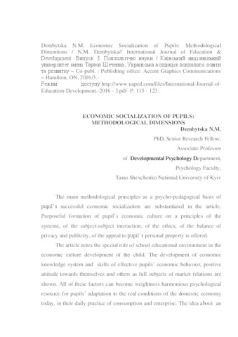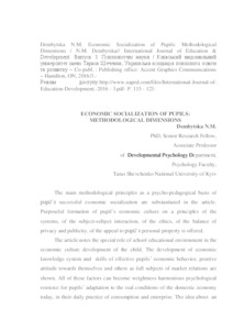 - Dembytska, N.M. (2017) Economic Socialization of Pupils: Methodological Dimentions International Journal of Education & Development. Psychology, 1. pp. 76-81.