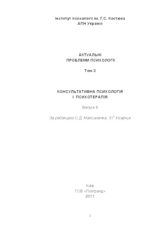 | Divisions: | Institute of Psychology after N.Kostiuk > Department of consulting psychology and psychotherapy |
