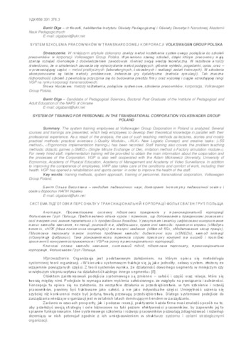 - Баніт, Ольга Василівна (2017) System of training for personnel in the transnational corporation Volkswagen Group Poland Освіта дорослих: теорія, досвід, перспективи, 1 (13). pp. 99-109. ISSN 2308-6386; ISBN 978-617-640-308-1