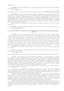 | Keywords: | training methods, system approach, training of personnel, transnational corporation, Volkswagen Group Poland. |