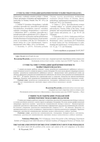 - Піддячий, Володимир Миколайович (orcid.org/0000-0002-8596-6749) (2017) The nature and content of the civic competency of future pedagogue Молодь і ринок, 7 (150). pp. 76-82. ISSN 2308-4634
