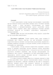 - Злочевська, Л.С. (2016) Quarry advising of student's young people Модернізація професійної освіти і навчання: проблеми, пошуки та перспективи, 8. pp. 172-183.