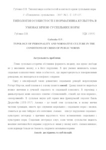 - Губенко, О.В. (2017) Typology of personality and normative culture in the conditions of crisis of public norms Психологія і суспільство, 2 (68). pp. 119-127. ISSN 1810-2131