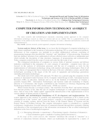 - Trius, Y.V., Gritsenko, V.I. and Timchenko, A.A. (2017) Сomputer information technology as object of creation and implementation In: Автоматика – 2017: XXIV Міжнародна конференція з автоматичного управління . НУБіП України, м. Київ, Україна, pp. 145-146.