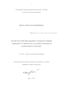 - Кирпа, А.В. (2017) Multicultural Education of Senior Students in Euroclubs of Comprehensive Secondary Educational Institution Dissertation candidate2 thesis, Інститут проблем виховання.