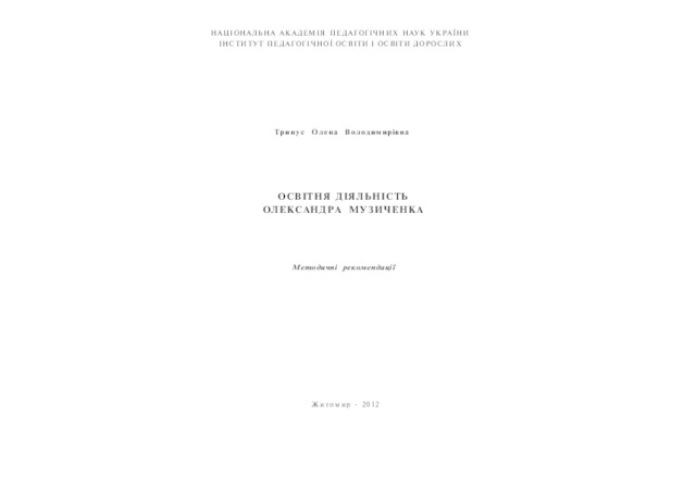 - Тринус, О.В. (orcid.org/0000-0003-2945-0796) (2012) Educational activity of Oleksandr Muzychenko [Teaching Resource]