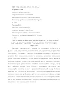 The approaches to soсialization of a personality in phylosophic, sociological, psychological, culturological, pedagogical research works are generalized by the authors. Socialization of a senior preschooler is viewed upon as a process and result of his social development and pedagogical input, of achieving an optimal form of social activity, thus rendering it possible to transform one’s own life and environment, to show readiness for the proactive and creative interaction with the social realm. The role of organized and chaotic factors of socialization is noted, among them such institutes of socialization as a family and a preschool educational institution being the most effective. The conclusion about the necessity of providing a stage-by-stage socialization for the children at a preschool educational institution, addressing the issue of modernizing the content, the form, and the methods of preschool education corresponding to Ukrainian sociocultural reality and intended to assist a child in the process of acquiring social experience and entering the system of social relations.