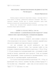 - Миропольська, Н.Є. (orcid.org/0000-0002-7469-5111) (2015) Art is a factor in the cultivation of human beings (part 2) Духовність особистості: методологія, теорія і практика, 4 (67). pp. 72-89. ISSN 2220-6310