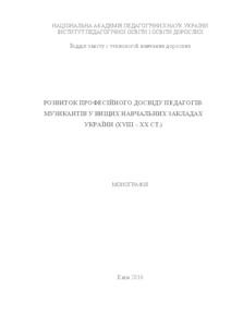 The monograph presents a retrospective of the development of national musical education in the dimension of stating its humanistic and culturological foundations; discloses the personological aspect of its development in XVIII-XX centuries; identifies tendencies in the development of national musical education over the designated period. We presented interesting and little-known historical facts of creative and pedagogical activity of Ukrainian teachers-musicians in terms of their contribution to the theory and practice of musical education of Ukraine. We described the experience of well-known and little-known personalities in the context of stating nation-forming foundations of educational thought, art education, and national culture, the formation of human-centrism foundations of national education. It is recommended for teachers and students of art and humanitarian faculties in higher pedagogical educational institutions and classical universities, postgraduate students, doctoral students, teachers of secondary and specialized art educational institutions and all those interested in problems of modern art education.
