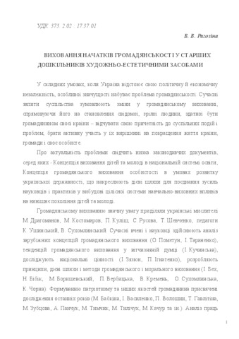 | Keywords: | elements of citizenship, senior preschool age, artistic and aesthetic means, forms, methods. |