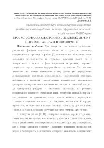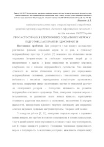 The article deals with various aspects of the application of electronic social networks in the training of postgraduates and doctoral students.