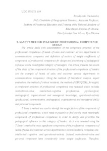 The article deals with substantiation of the component structure of the professional competence of heads of sales and customer service departments in communications companies and definition of vectors of weight coefficients of components of professional competence for design and prioritizing of pedagogical influence on the investigated category of managers. The article presents the results of the study of the component structure of the professional competence of leaders (on the example of heads of sales and customer service departments in communications companies). Using the methods of theoretical analysis, expert evaluation (the method of critical incidents, the method of SERVQUAL, foresight), a component structure of professional competence was revealed which includes motivational-value, intellectual-cognitive (professional, psychological, andragogical, organizational and managerial knowledge), operational-activity (professional, communicative, andragogical, organizational and managerial skills) and personal components. T.Saaty’s method was used to identify the weight factors of the components of professional competence, which made it possible to find out the most meaningful components of professional competence in order to design and prioritize the pedagogical influence on this category of leaders. As it was revealed using the T.Saaty’s method he most significant components of the professional competence of heads of sales and customer service departments in communications companies are: intellectual cognitive and operational-activity. Instead, motivational-value and personal component have considerably lower weight coefficients. Therefore, designing content of training, we highlight aspects that will primarily contribute to the development of professional, organizational, managerial and androgical skills; professional, organizational, managerial and andragogical knowledge as a cognitive basis for skills development. Motivational-value and personal components will be influenced by integrating into the basic training courses of specific assignments, cases, exercises, which will nourish the values necessary for the fulfillment of functional duties and professionally important personal qualities.