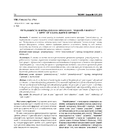 У статті на основі аналізу результатів застосування принципу «рівний-рівному» за кордоном та в Україні, визначено основні параметри його успішного впровадження в освітній процес. Застосування в освітньо-виховних програмах і технологіях принципу «рівний-рівному» сприяє процесу формування людини, здатної приймати рішення самостійно, брати на себе відповідальність, що дозволяє розглядати його як ефективну технологію соціально-педагогічного впливу і засіб підвищення ефективності навчально-виховного процесу.