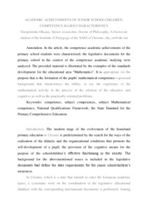 | Keywords: | competence, subject competences, subject Mathematical competence, National Qualifications Framework, the State Standard for the Primary Comprehensive Education |