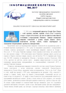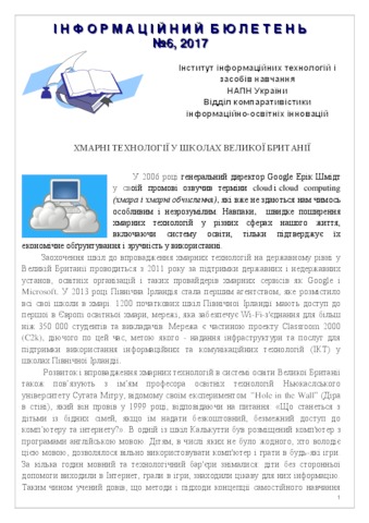 - Малицька, І.Д. (2017) Information Bulletin №6, 2017 "Cloud technologies in Great Britain schools" Insitiute of information technologies and learning tools of NAES of Ukraine, м. Київ, Україна.