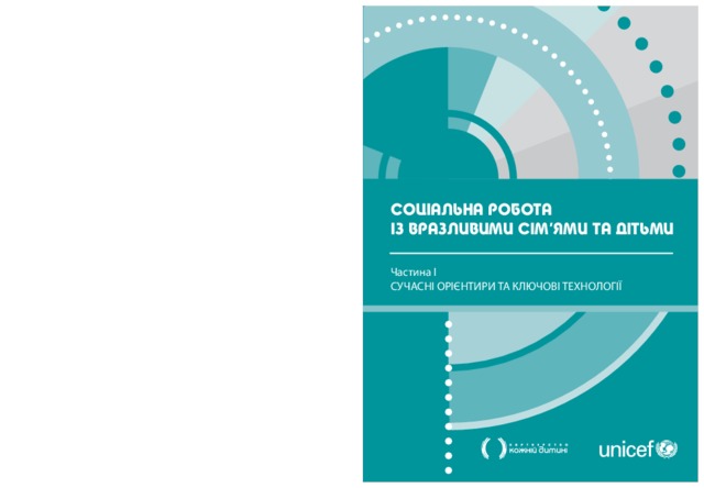 In part one of the manual reveals the essence of the basic principles of the functioning of the modern model of social work in society, namely: family-oriented approach, partnership, integration and interaction, team work; coordination and professional responsibility; maximum focus on the development of strengths and positive resources of recipients of services, families with children; their active participation in all processes. The manual contains descriptions of good practices, practical advice and tools for organizing and implementing social work, in particular on the early identification of vulnerable families with children, case management, assessing the needs of the child and his family, and the like. The views expressed in this publication cover the opinions of its authors and do not necessarily coincide with the policies and views of the United Nations Children's Fund (UNICEF).