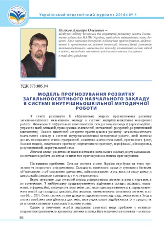 - Пузіков, Дмитро Олегович (orcid.org/0000-0003-2630-6924) (2016) The model of forecasting the development of a comprehensive school in the inner-school methodoligical activity Український педагогічний журнал, 4 (8). pp. 86-93. ISSN 2411-7420