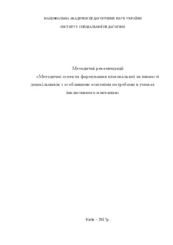 Методичні аспекти формування пізнавальної активності дошкільників з особливими освітніми потребами в умовах інклюзивного навчання.pdf - Submitted Version Download (435kB) | Preview |