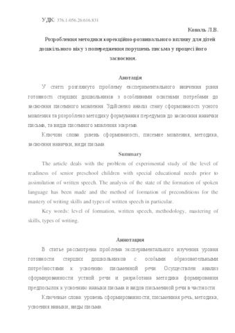 Розроблення методики корекційно-розвивального впливу для дітей дошкільного віку з попередження порушень письма.pdf Download (204kB) | Preview |