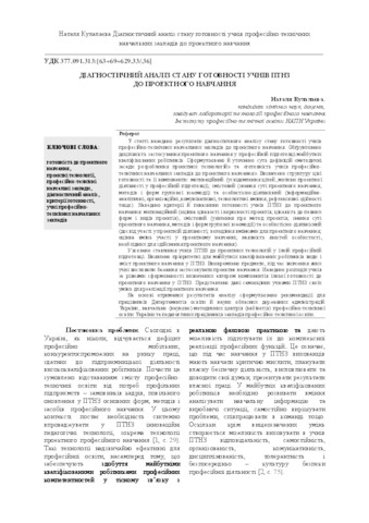 - Кулалаєва, Наталя Валеріївна (orcid.org/0000-0002-8613-1495) (2017) Diagnostic analysis of condition of preparedness of vet-studeents for project education Науковий вісник Інституту професійно-технічної освіти НАПН України, 2 (14). pp. 70-78. ISSN 2223-5752
