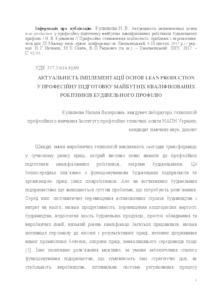 The article substantiates the relevance of the implementation of Lean production bases in the training of future skilled construction workers as a factor in their professional development, which makes it possible to employ young people in a market economy. The principles on which the concept of economical production is based are given. The components that make up the concept of economical production are mentioned.