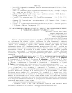 - Шевченко, Світлана Миколаївна (2017) Organization of educational process in schools of national minorities in conditions of independent Ukraine (1991-2010) In: Pedagogical education at the turn of the century: the experience of the past - a glimpse into the future: materials of the international scientific and practical conference dedicated to the 95th anniversary of the Department of Pedagogy (October 19-20, 20 . ПП Лисенко М.М., м. Ніжин, Україна, pp. 221-223.