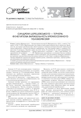 - Ризничук, М.О. (orcid.org/0000-0002-3632-2138) and Пішак, В.П. (orcid.org/0000-0002-0637-6936) (2015) Turner syndrome: phenotypic variability of chromosomal polymorphism Здоровье ребенка, 3 (62). pp. 1-167. ISSN 2224-0551