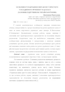 - Новосьолова, Валентина Іванівна (2017) Features of learning the syntax of a simple complicated sentence in the 8th grade (according to the new textbook of the Ukrainian language) Українська мова і література в школі, 3 (132). pp. 20-24. ISSN 2076-8184