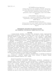 The main characteristics offunding for researchand development in thehigher education institutionsof the US were investigated, usingthe country’sofficial statistics.It was found thatthe correspondingexpendituresfor the periodof 2004 - 2013increasedin 1.5 timesand reached67.2 billiondollars, orabout 15%of the nationalexpendituresfor these purposes.Mostuniversityresearch and developmentare fundedfrom the federalbudget (59%), funds ofinstitutions (22%), and the least are supportedbusiness (5%).Thebasic researchreceives64% of finding, applied research - 27%, and development - 9% of the total funding.Two thirdsof expenditures(67%)are directed toresearch and developmentin public institutions, one third (33%)- privateones.Spending onuniversityresearch and developmentare carried outin 24fields(includingthreeunidentifiable).More than56% of the funds are allocatedto the "Life sciences".Besidesthis field,other priorities are:"Physicalsciences", "Environmental sciences", "Electrical engineering", "Social sciences","Computersciences","Mechanicalengineering", "Civil engineering", "Education", "Psychology".Togetherfor these10fields, 86% of total expenditures are allocated.The principles andpriorities, approaches to fundingresearch and developmentin the universities of the United Statescan be used fordevelopment of a strategyfor scientific andtechnological activitiesin the sphere ofhigher education in Ukraine.