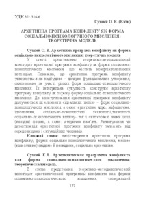 - Суший, О.В. (orcid.org/0000-0002-4364-7571) (2017) The archetypal conflict program as form of social and psichological thinking: theoretical model Психологічні науки: проблеми і здобутки, 1 (10). pp. 177-192. ISSN 2522-4093