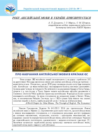 - Джурило, Аліна Петрівна (orcid.org/0000-0002-5129-6724), Маріуц, Ілона Олександрівна and Шпарик, Оксана Михайлівна (orcid.org/0000-0001-7507-4950) (2016) English language learning in EU countries Ukrainian Pedagogical Journal, 1. pp. 6-15. ISSN 2411-1317
