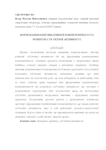 - Назар, Максим Миколайович (2017) Сommunicative Competence's Forming and Development of Subject Activity Technologies of Intellect Development, 2 (6 (17)). ISSN 2223-0521