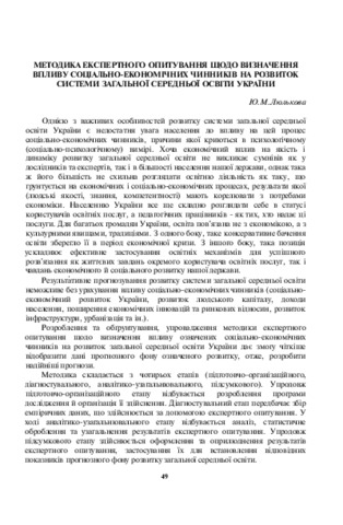 The thesis considers the methodology of an expert survey on determining the influence of socio-economic factors on the development of the system of general secondary education in Ukraine.