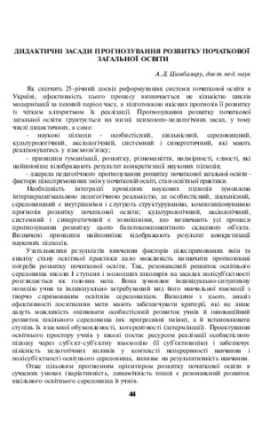 - Цимбалару, Анжеліка Дмитрівна (2017) Didactic principles of forecasting the development of elementary general education In: Анотовані результати науково-дослідної роботи Інституту педагогіки НАПН України . Педагогічна думка, м. Київ, Україна, p. 44. ISBN 978-966-644-398-5