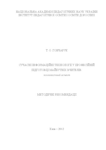 - Гончарук, Т.О. (2012) Modern Information Technologies in the Professional Training of Future Teachers: The Psychological Aspect [Teaching Resource] (Unpublished)