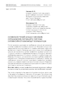 - Остапенко, Ірина Віталіївна (orcid.org/0000-0001-6710-5964) and Соснюк, Олег Петрович (orcid.org/0000-0002-7558-8879) (2017) Psychological analysis of typical problem situations in the system of professional interaction of managers Український психологічний журнал, 3 (5). pp. 165-181. ISSN 2520-6265