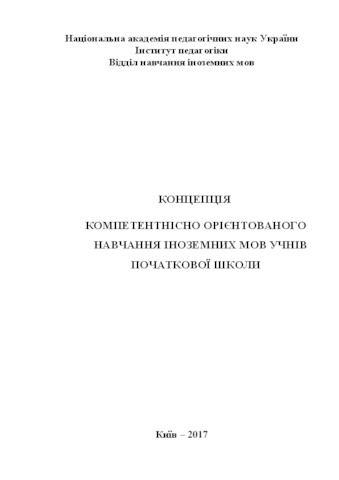 The concept outlines didactic and methodical aspects of organizing the process of teaching foreign languages to elementary school students with a competence-based approach. It describes the principles of selecting didactic material in order to provide competence-oriented content, explains how age peculiarities of elementary school students and their cognitive capabilities influence their aptitude to master the content of foreign language learning (which is determined by the curriculum). In accordance with the considered scientific principles, a model of competence-based teaching of a foreign language to students of grades 1-4 is suggested by the authors. The suggested concept is intended for English language teachers, methodology specialists, textbook authors as well as for students of language departments of higher educational institutions.