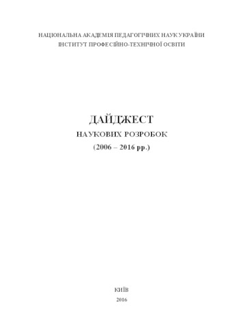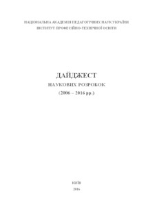 In a digest lemmatas and selected text of scientific developments of scientists, graduate students and докторантів of Institute of vocational formation of НАПН of Ukraine are presented: conceptions, modern models and technologies of trade education and studies, methodologies of professional studies, program of studies of student's young people and teachers, authorial courses, training, monographs, manuals(educational, scientific, methodical) and textbooks. This edition is appointed to the leaders, teachers of vocational educational establishments and general schools; to the graduate students, докторантам, науково- to the pedagogical workers of the system of higher education; to the teachers and listeners of courses of in-plant training; to the leaders and methodists educational (scientifically)-methodical centers and cabinets of vocational education and to the managers of education.