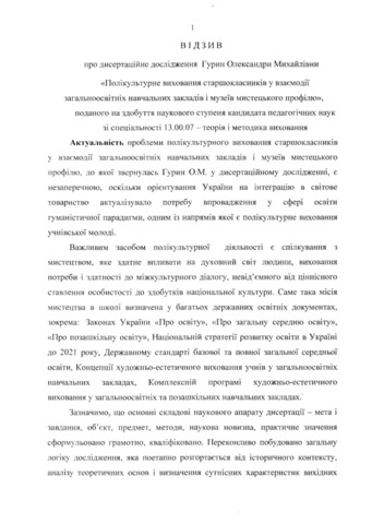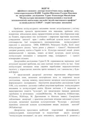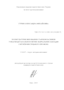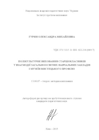 - Гурин, О. М. (2015) Multicultural Education of Pupils in the Interaction of Secondary Schools and Art Museums Dissertation candidate2 thesis, Інститут проблем виховання.