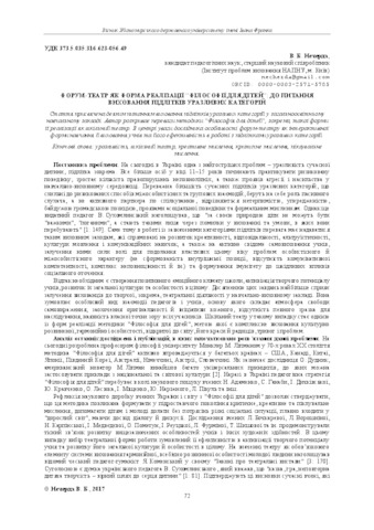 - Нечерда, В. Б. (2017) Forum-Theater as a Form of Realization of "Philosophy for Children": to the Issue of Education of Adolescents of Vulnerable Categories Вісник Житомирського державного університету імені Івана Франка : Педагогічні науки, 5 (91). pp. 72-76. ISSN 2076-6173