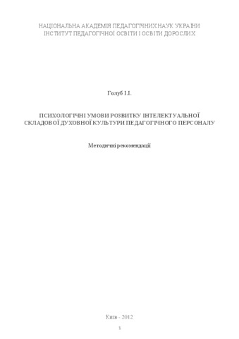 - Голуб, І.І. (orcid.org/0000-0001-9008-6255) (2012) Psychological conditions of the intellectual component of the spiritual culture of the teaching staff [Teaching Resource] (Unpublished)