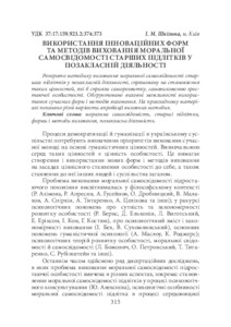 - Шкільна, Ірина Миколаївна (2016) Usage of Innovative Forms and Methods of Education of Moral Consciousness of Elder Teenagers in Extracurricular Activities Теоретико-методичні проблеми виховання дітей та учнівської молоді, 2 (20). pp. 315-324. ISSN 2308-3778